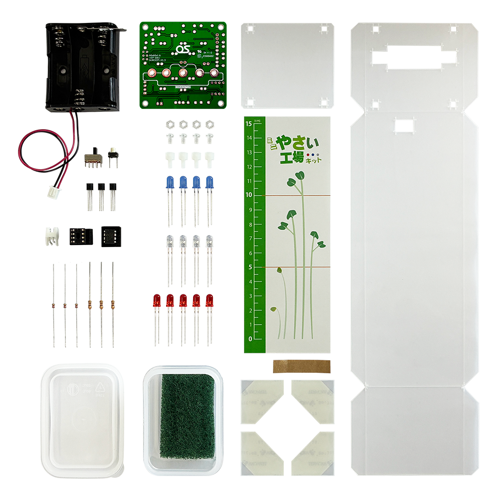 万一電子部品を紛失・破損した場合でも安心です。先生がご用意いただくのは乾電池とスプラウトの種子だけで、すぐに授業でご活用いただけます。