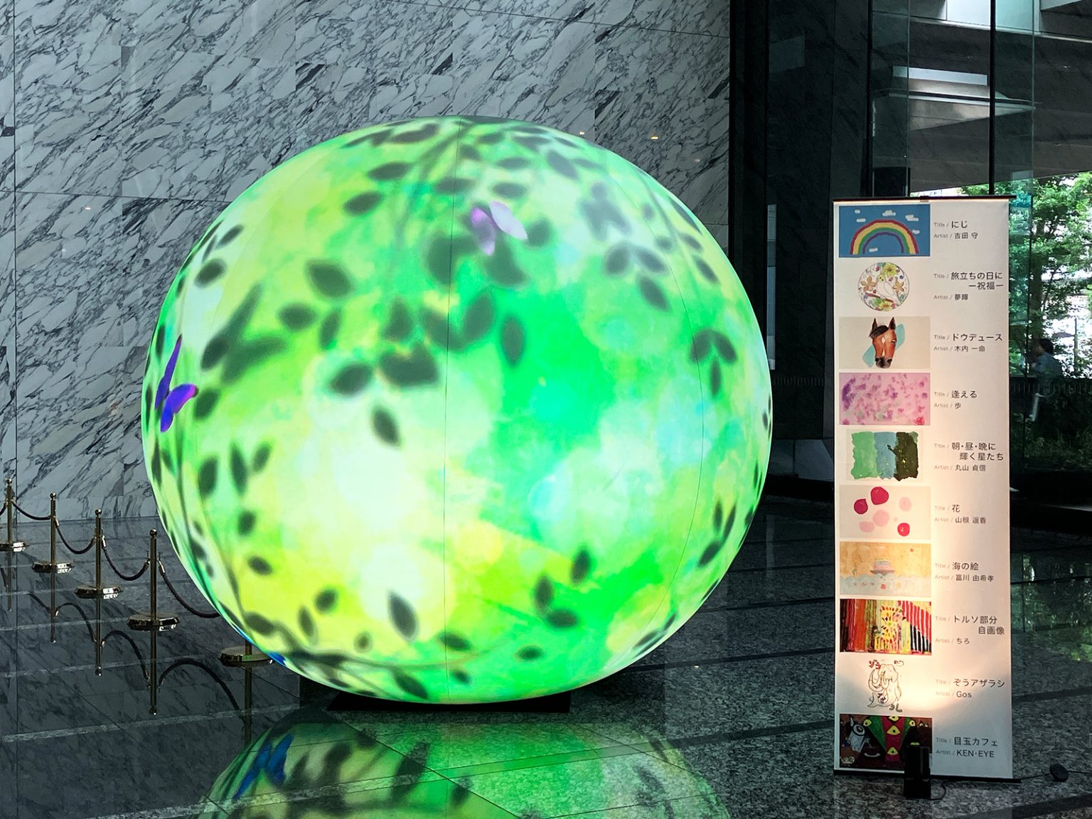 イベントや展示会の集客ツールとして、球体に映像を映すことが可能な球体スクリーンはアイキャッチとして抜群のPR性を誇ります。平面のスクリーンの映像とは異なる幻想的な映像表現が可能です。 送風機で空気を送ることで球体の形状を保ち、球体スクリーンの背面からプロジェクターで投写します。 球体専用のコンテンツの加工は不要で、専用プロジェクターとレンズで実現可能です。